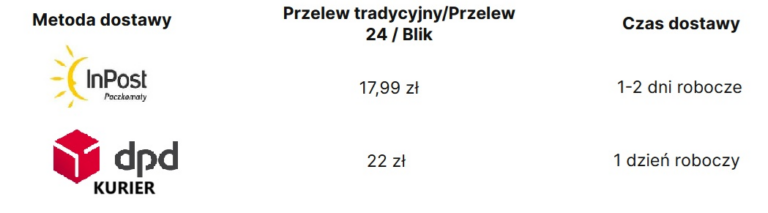 - czas dostawy (do 2 dni roboczych)
