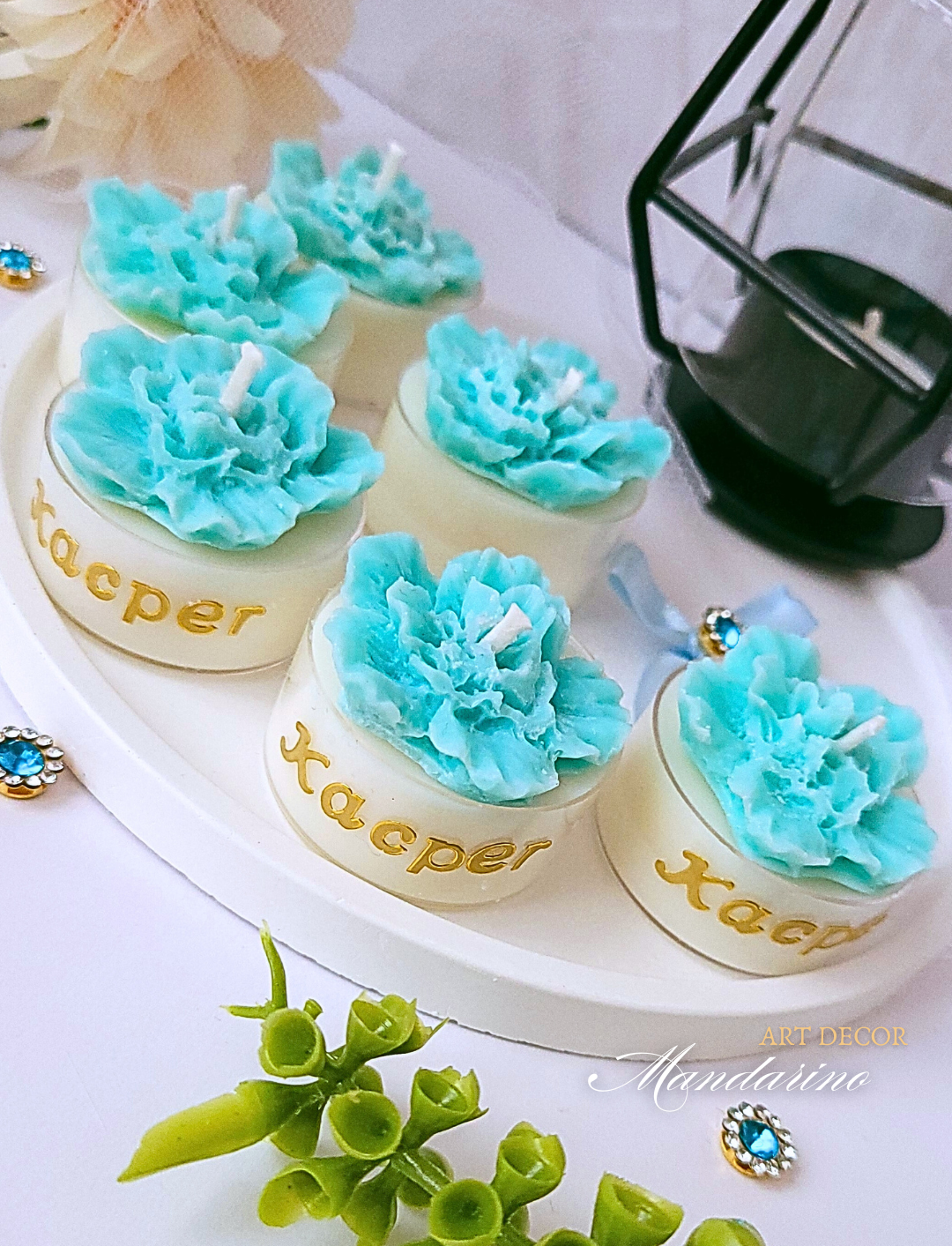 Świece „Goździki” (wersja niebieska) na podziękowania Roczek