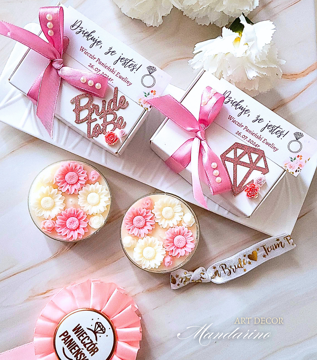 • W cenie wliczone jest: pakowanie w ozdobne pudełka z dekoracjami specjalnie przygotowanymi na Wieczór Panieński  + personalizowane zawieszki (z Imieniem oraz Datą Uroczystości).