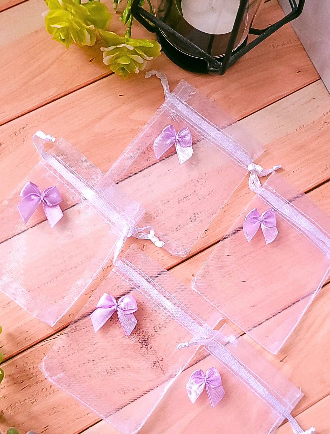 Woreczki prezentowe organza z fioletową kokardą